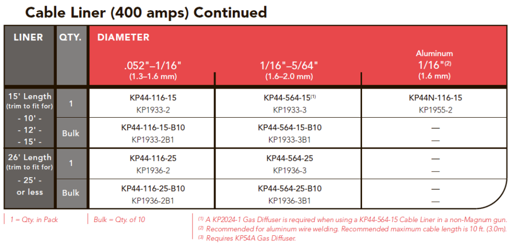 Лайнер KP44-564-15 (KP1933-3), для проволоки 1,6 - 2,0 мм, длина 4,5 м. Подходит для сварочных горелок Magnum 300, Magnum 400 FM.